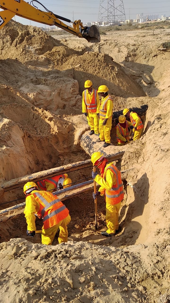 Design, Engineering and Construction of Carbon Steel Main Transmission Pipeline OD 800mm diameter from Al Sajjah to Al Barashi and interconnection to existing network.